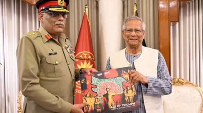 A fresh diplomatic storm has erupted in South Asia after Bangladesh’s interim head Muhammad Yunus presented a controversial “Greater Bangladesh” map to Pakistan’s Joint Chiefs of Staff Committee Chairperson General Sahir Shamshad Mirza during his official visit to Dhaka.