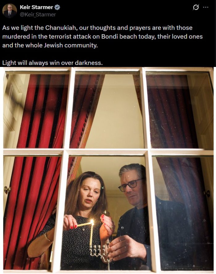 British Prime Minister Keir Starmer marked the first night of Hanukkah by sharing a photograph of himself and his Jewish wife lighting the opening candle, pairing the moment with a firm denunciation of antisemitic terror. His message followed a deadly terrorist attack in Sydney, Australia, which targeted Jewish families gathered to celebrate Hanukkah on Bondi Beach.